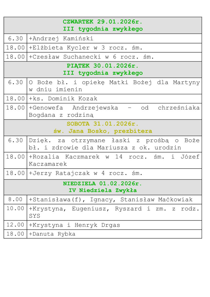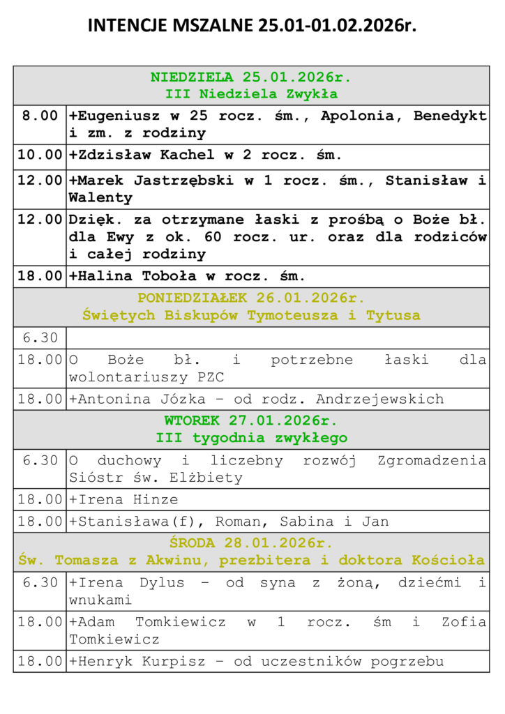 Intencje Mszalne 25.01-1.02.2026r.