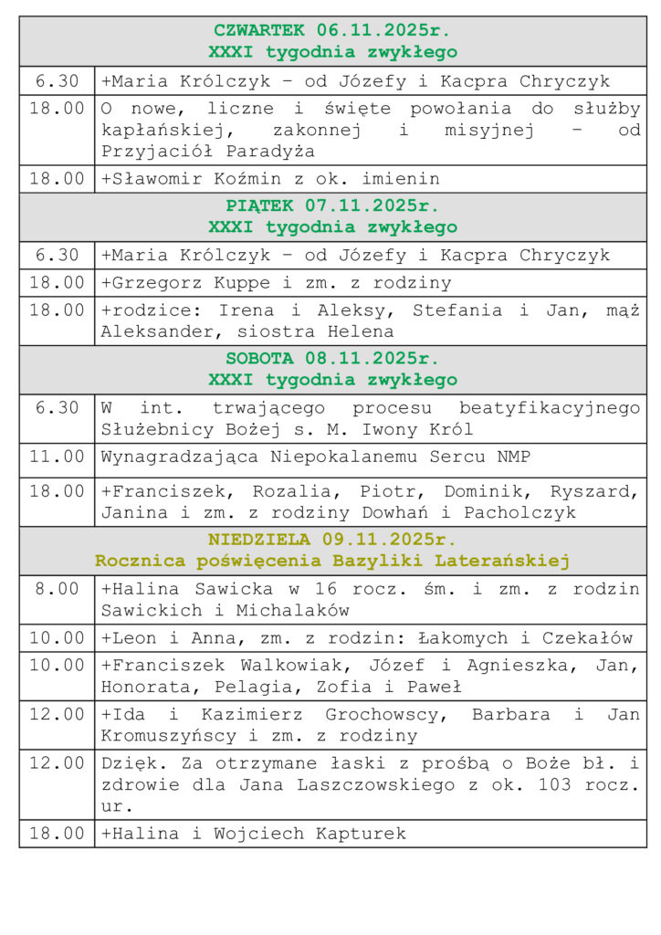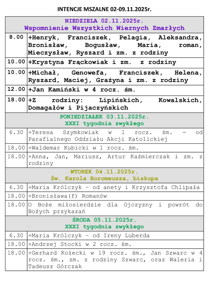 Intencje Mszalne 02-09.11.2025r.